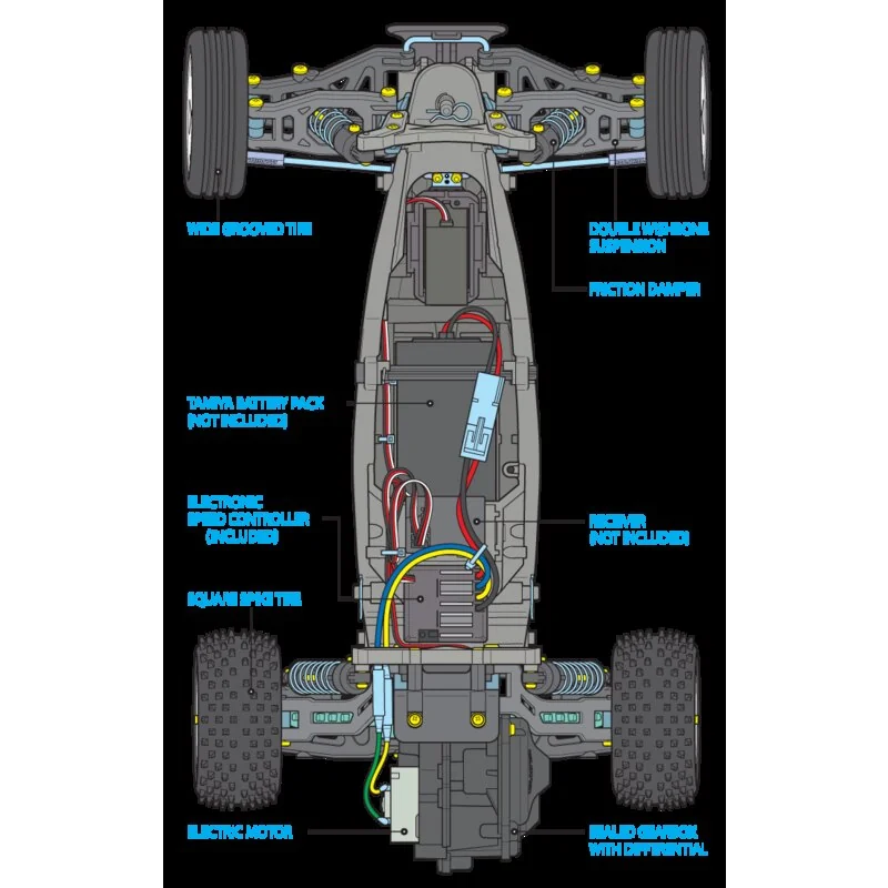 Based on the new chassis DT-03 2WD buggy that is intended to discover the world of radio controlled car.