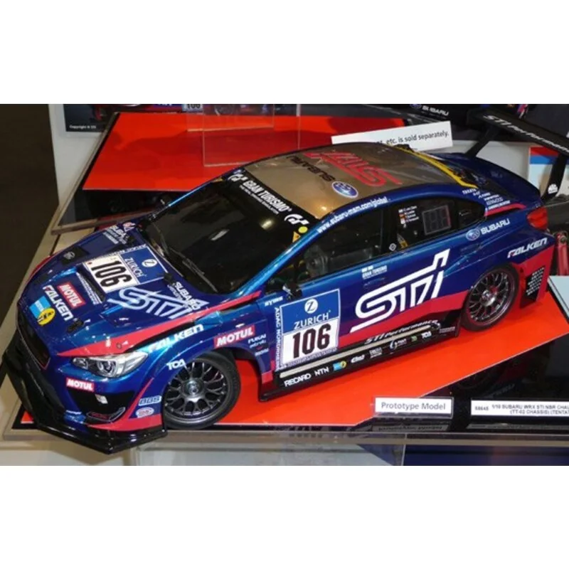 Carrosserie Subaru WRX STI sur chacircssis TT02.La carrosserie de ce modèle est une reproduction fidèle de celle de la WRX STI qui remporta la victoire en catégorie SP3T aux 24 Heures du Nürburgring 2016.