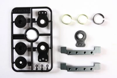 This set includes a brand new servo mount design. Fit the parts to your 1/14 scale R/C tractor truck model for greater rigidity and improved steering/shifting output from your servos.