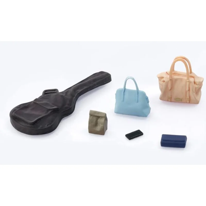 • Accessories: scooter, guitar case, coffee mug, smartphone, bags.