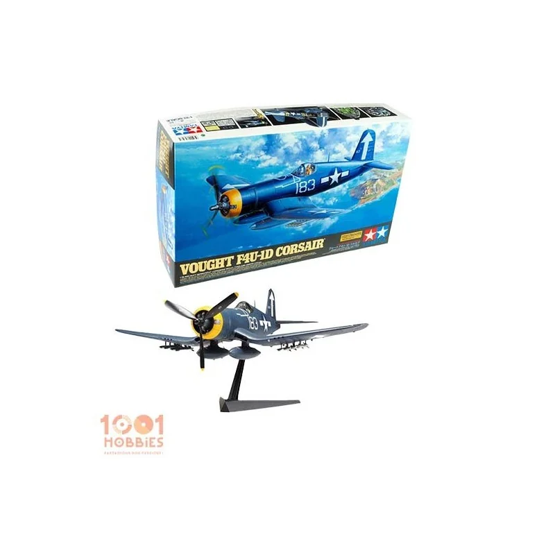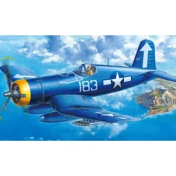 The model offers various presentation possibilities: in flight (retracted or unfolded), pilot in command or not, pilot standing on the ground (two figures supplied), a detailed engine with or without the cover, with additionally variations of the load carrying capacity.br/> The two chosen decorations offered are among the most colorful worn by F4U-1D.