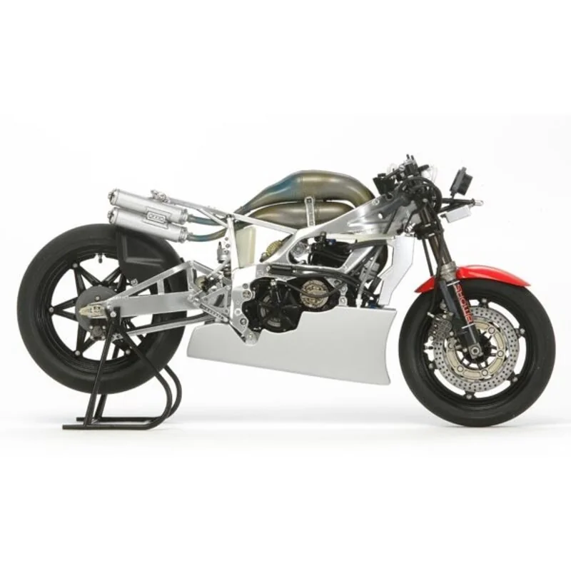 La saison 1984 fut décevante mais l’année suivante, la NSR500 remporta le Championnat.Le modèle reproduit la première version de la NSR500 qui remporta le GP d’Italy 1984.Les chambres d’expansion des échappements sont fidèlement reproduites and faciles à assembler.Le cadre and le réservoir sont eux aussi d’un grand réalisme.Carénage avant, capot des chambres d’expansion and carénage de selle amovibles pour observer les détails internes.Suspension arrière Pro-Link fonctionnelle au moyen d’un ressort hélicoïdal.