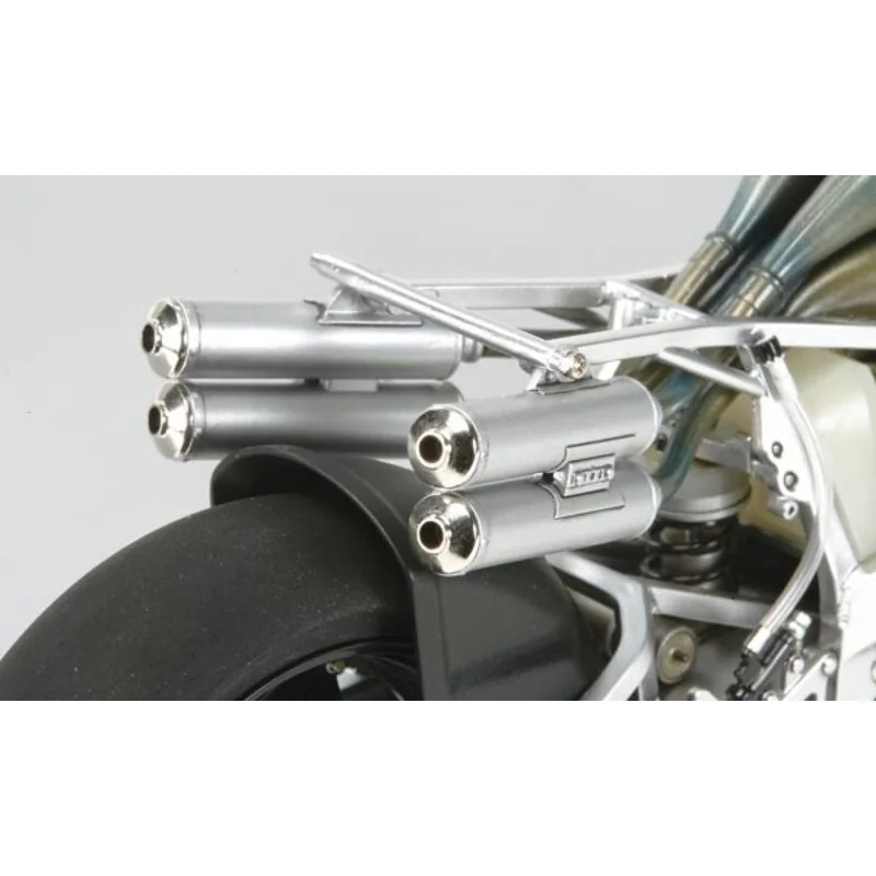 Bras oscillant détaillé.Durits and câbles électriques reproduits en tube vinyleLe set de détails “Front fork NSR500 1984” (réf.12651 – disponible séparément) permettra de pousser encore plus loin le réalisme de la maquette.