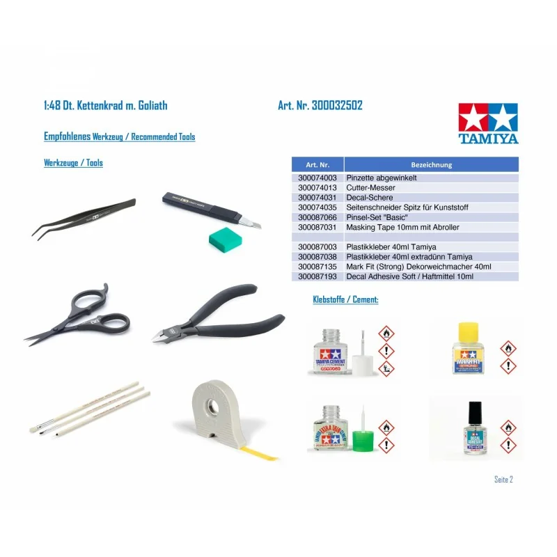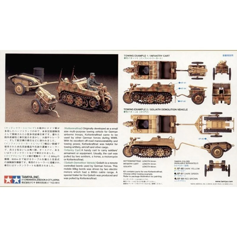 This is a fabulous complete display kit featuring Kettenkfraftrad with an infantry cart, a demolition vehicle and many other great accessories on a tiny 1/48 scale.