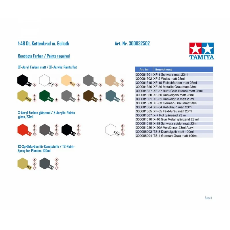 – 5 sets of markings to reproduce both the Germany army or Luftwaffe vehicles.