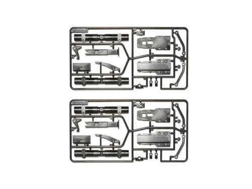 These option parts are strengthened versions of axle parts used in Tamiya semi-trucks. The carbon reinforced molded polycarbonate parts offer increased strength. They are particularly useful for frequent towing. You can expect better axle shape retention and gear durability when using this reinforced part.