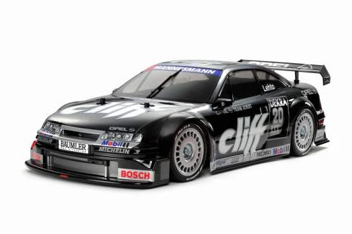 This R/C assembly kit recreates the Opel Calibra V6 Cliff. The polycarbonate body is mounted on the TT-01 Type-E chassis, for ease of assembly. The Opel Calibra V6 Cliff was previously released on the Tamiya TA-02 chassis during the 1990Â’s touring car boom.