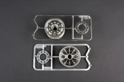 Actual tractor trucks are often seen with plain natural-metal wheels made of steel or aluminum. To depict this type of wheel, these matte finish metal-plated wheels for 1/14 scale R/C tractor trucks and semi-trailers are available as an option accessory. By simply replacing with kit-standard gloss finish metal-plated wheels, you can give your truck or trailer a different appearance.