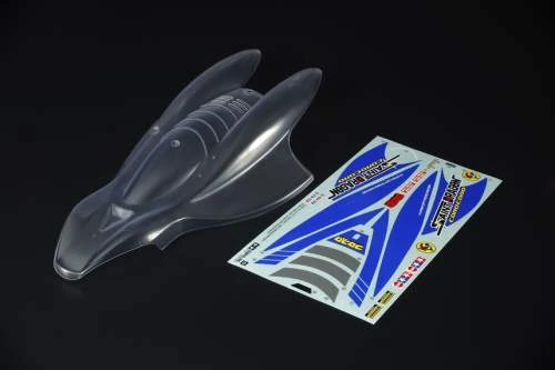 This is a clear polycarbonate body parts set of the Saint Dragon. It is made out of 1mm thick polycarbonate. The set includes masking seals for the windows and a sticker set to finish the compact buggy body.