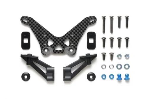 This Hop-Up Option part is for use on the Tamiya TD4 and TD2 chassis. The carbon fiber reinforced plastic part (4mm thick) ensures increased rigidity and precise damper setup compared to the stock FRP plastic part included in the kit.