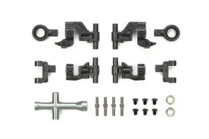 These are adjustable upper arms that can be used on any variant of the TT-02 chassis. The parts allow you to add or decrease wheel camber. Adding camber for racing purposes allows the car to alter its traction characteristics under turning and cornering.